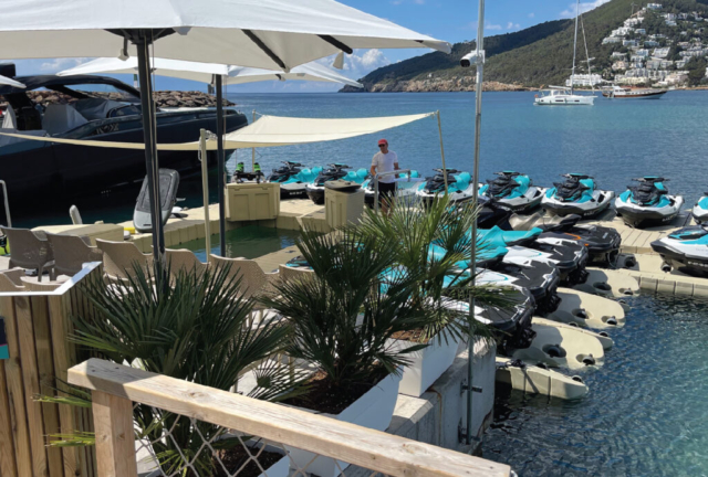 The facilities are located directly in front of the CBBC Marina Santa Eulalia beach club. For customer convenience, activities take place on floating platforms, which also feature a designer chill-out area by La Villa Garden & Design. From here, customers can easily embark on jet-ski tours.